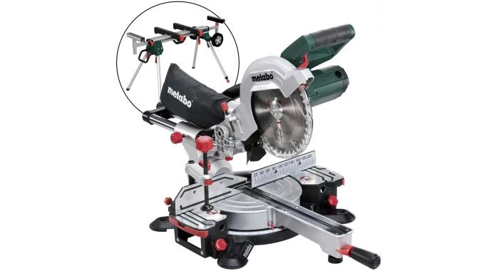 - Transport facile grâce aux poignées ergonomiques et au blocage de la tête de scie