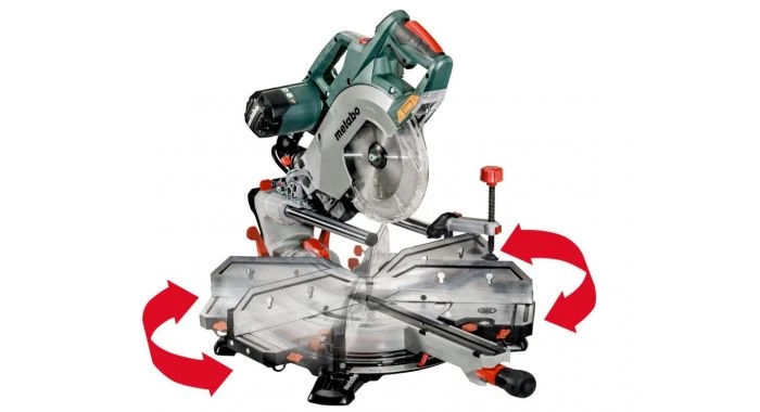 Flexibilité maximale lors du sciage grâce au plateau qui tourne dans les deux sens et à la tête de scie inclinable dans les deux sens